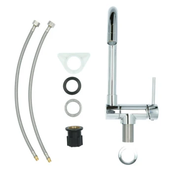De Atlantic keukenkraan Carson met hendel Chroom bestaat uit een glanzende keukenkraan van 30 cm hoog met 2 flexibele aansluitslangen, bevestigingsmateriaal en montagehandleiding. De Carson keukenkraan heeft een draaibare uitloop van 360° waarmee je eenvoudig plaats maakt bij je gootsteen. Ook kun je de uitloop tot 90° naar beneden inklappen, wat heel handig is als je bijvoorbeeld het raam achter de kraan open wil zetten. Met de eenhendelbediening draai je met 1 hand de kraan naar de gewenste temperatuur. Je bespaart water door de ingebouwde eco-klik. Een ingebouwde weerstand in de hendel zorgt ervoor dat je de kraan niet direct op de hoogste straalstand zet. Wens je toch een hardere straal, dan zet je de hendel verder open. Aan de anti-kalk perlator hecht kalk zich moeilijk vast en veeg je er met de hand af. Deze keukenkraan heeft een mooie glanzende chromen afwerking. Gebruik alleen water en een zachte doek om de kraan schoon te maken. Gebruik geen schurend, bijtend, azijnhoudend of agressief schoonmaakmiddel. Op de kraan heb je 5 jaar garantie.