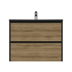 Tiger Reverse Meubelset 80 Cm Met 2 Lades Chalet Eik / Mat Zwart Inclusief Quadro Wastafel Mat Zwart