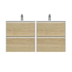 Tiger Reverse Meubelset 2×60 Cm Met 4 Lades Naturel Eik / Mat Wit Inclusief Oval Wastafel Mat Wit