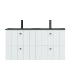 Tiger Maryport Badkamermeubelset 120 Cm Mat Wit Met Matzwarte Polybeton Wastafel En Matzwarte Grepen