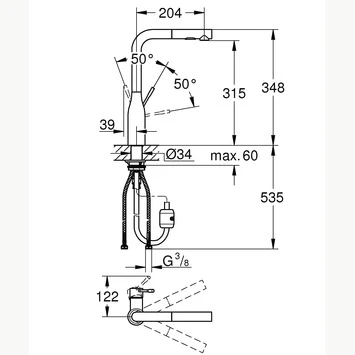 | Lengte flexibele aansluitslang | 53.5 cm |