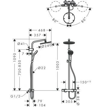 Zoek je een mooi ontworpen regendouche? Ga dan voor de Hansgrohe Regendouche MySelect S 240 met Thermostatische Douchekraan en Handdouche. Met de bijgeleverde Isiflex-doucheslang (gemaakt van kunststof met een metaaleffect) van 160cm en een apart schuifsysteem, is deze regendouche meteen klaar om op je bestaande douche-aansluitingen te monteren. Je kunt de handdouche in hoogte verstellen en is daarom makkelijk en flexibel in gebruik. Voor het grote spoelwerk zet je de ronde hoofddouche met een oppervlak van maar liefst 240mm aan. Met de Select-knop wissel je eenvoudig van straalsoort, bijvoorbeeld een volle regenstraal of de zachte RainAir-variant. De SafetyStop begrenst de thermostaat op 40 graden om ervoor te zorgen dat je nooit meer te heet doucht. Dankzij het Quickclean-systeem in de vorm van flexibele siliconen nopjes, verwijder je kalk met een paar keer wrijven van de douchekop. Kortom: hotelwaardig douchen doe jij voortaan in je eigen badkamer.
