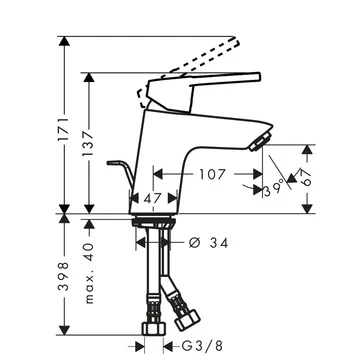 Hansgrohe Wastafelkraan Logis Loop 70 Met Hendel En Waste Chroom