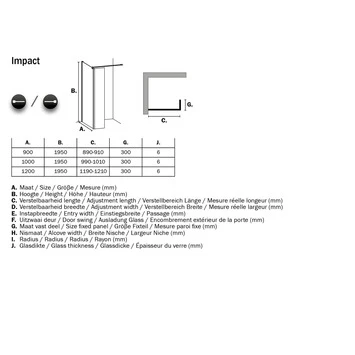 De Sealskin Inloopdouche Impact A1 100x195x30 cm Chroom heeft 8mm dik veiligheidsglas en oogt stijlvol. De ruimtelijke opzet wordt versterkt door de inkortbare steun die op 90 graden geplaatst wordt voor maximale stabiliteit.