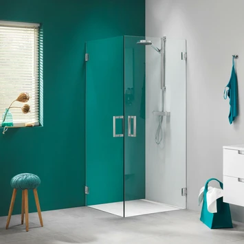 Sealskin Swingdeur voor Hoekinstap I AM 200×100 cm RVS, 8mm helder veiligheidsglas + antikalk. De volledig profielloze serie ‘I AM’ is met recht een transparante alleskunner. Naast diverse standaard maatvoeringen zijn talloze maatwerkoplossingen mogelijk. Zo kunnen we de breedte en hoogte aanpassen, maar bijvoorbeeld ook eventuele schuintes in de muren of het plafond opvangen. Deze draaideur, gecombineerd met een tweede draaideur (hoekinstap), maken een transparante en ruime douche. Het veiligheidsglas van maar liefst 8mm is altijd voorzien van een antikalk laag waardoor kalk en viezigheid zich minder snel zal hechten. De scharnieren van I AM zijn zelfsluitend. Dat zorgt ervoor dat de deur automatisch naar zijn nulpunt gaat; hij gaat dus vanzelf dicht! Bovendien is dat nulpunt in te stellen. Je kunt je deur dus onder een hoek plaatsen en zo een unieke oplossing maken.I AM draaideuren zijn ook beschikbaar in de standaardmaat 900mm en natuurlijk als maatwerk oplossing. De scharnieren en grepen zijn tevens beschikbaar in luxueus chroom en in een unieke matzwarte afwerking.