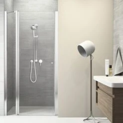 Met deze Sealskin Swingdeur creëer je een grote instap voor je douche zonder in te leveren op je bruikbare ruimte. De deuren openen namelijk naar binnen én naar buiten. In een iets compactere badkamer kun je de deuren dan altijd naar binnen openen. De glazen wand is gemaakt van 6mm dik veiligheidsglas. Je hoeft je dus geen zorgen te maken over barsten. Ook heeft de wand een antikalk coating waardoor het onderhoud zeer eenvoudig is. De pluggen, schroeven en handleiding worden meegeleverd. Je kunt deze Sealskin Swingdeur voor Nis Code 2-delig L 90×197 cm dus eenvoudig zelfin een nis monteren. Deze swingdeur is een links te monteren model. Wil je de deur aan de rechterkant monteren dan kun je de Sealskin Swingdeur voor Nis Code 2-delig R 90×197 cm in de GAMMA webshop kopen. Met de standaard 5 jaar garantie weet je dat je kwaliteit in huis haalt. Weet je toch niet zeker of dit HET product voor je is? Kijk dan gerust verder binnen de Sealskin serie. GAMMA heeft namelijk enorm veel variatie in afmetingen en vormen op gebied van douchewanden. Daar zit zeker iets voor je tussen!
