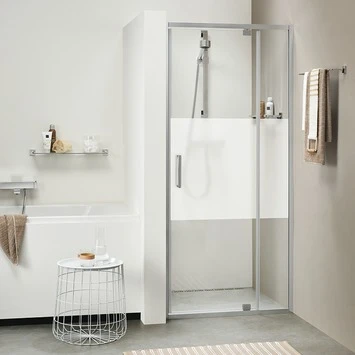 Sealskin heeft enorm veel douchewanden, douchedeuren en douchecabines binnen verschillende series en stijlen. Deze Sealskin Swingdeur voor Nis Style 90×195 cm met Gesatineerde Band is daar een van. Deze swingdeur is ook als schuifdeur voor nis verkrijgbaar en je hebt de keuze tussen helder glas of juist een deur met een gesatineerde band zoals deze. Bij de Sealskin Style wordt gebruik gemaakt van een slimme montage techniek. Na de montage zijn er geen schroeven meer zichtbaar. Het glas is extra veilig en 6 mm dik. Dat maakt dit een stevige douchewand die een lange tijd mee kan. Tot slot is deze swingdeur zowel link- als rechtsdraaiend te monteren in een nis. De keuze is geheel aan jou.