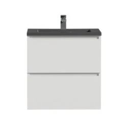Tiger Studio Badkamermeubel 80 Cm Chalet Eiken Met Wastafel Polybeton Mat Zwart Greep Rvs Plat