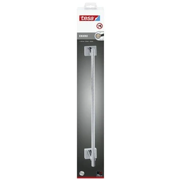 De tesa® Ekkro handdoekhouder in hoogglans verchroomd metaal heeft een aantrekkelijk en praktisch design. Hij is te bevestigen zonder boren of schroeven dankzij de unieke tesa® Power.Kit technologie. Monteren is heel eenvoudig: 1) Plak de adapters op de muur en vul deze met de tesa® Power.Kit-lijm 2) Laat vervolgens de lijm 12 uur uitharden 3) Schroef de handdoekhouder op beide adapters. Alle benodigde materialen zijn in de verpakking bijgesloten: handdoekhouder enen adapterset. Deze elegante houder voor handdoeken heeft een tijdloos design. De houder kun je eenvoudig zonder lijmresten en beschadiging verwijderen en daarna opnieuw bevestigen met een adapter set BK20-2, welke ook los te koop is. Geschikt voor tegels, metaal, natuursteen, marmer, beton, hout, glas en vele soorten kunststof. Niet geschikt voor behang, stucwerk en andere oppervlakken met een antikleeflaag. Er zijn van deze Ekkro serie diverse sanitair accessoires verkrijgbaar, voor een complete look. Geef je badkamer een nieuwe stijl met Ekkro.