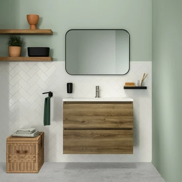 Tiger Studio Badkamermeubel 80 Cm Chalet Eiken Met Wastafel Polybeton Mat Zwart Greep Rvs Plat