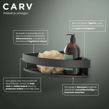 Carv is eenvoudig te bevestigen met TigerFix, onze lifehack voor iedereen die niet wil boren.